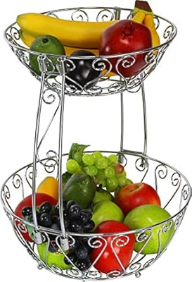 Best Top 2 Tier Chrome Metal Wire Fruit Basket Ideas And Get Free