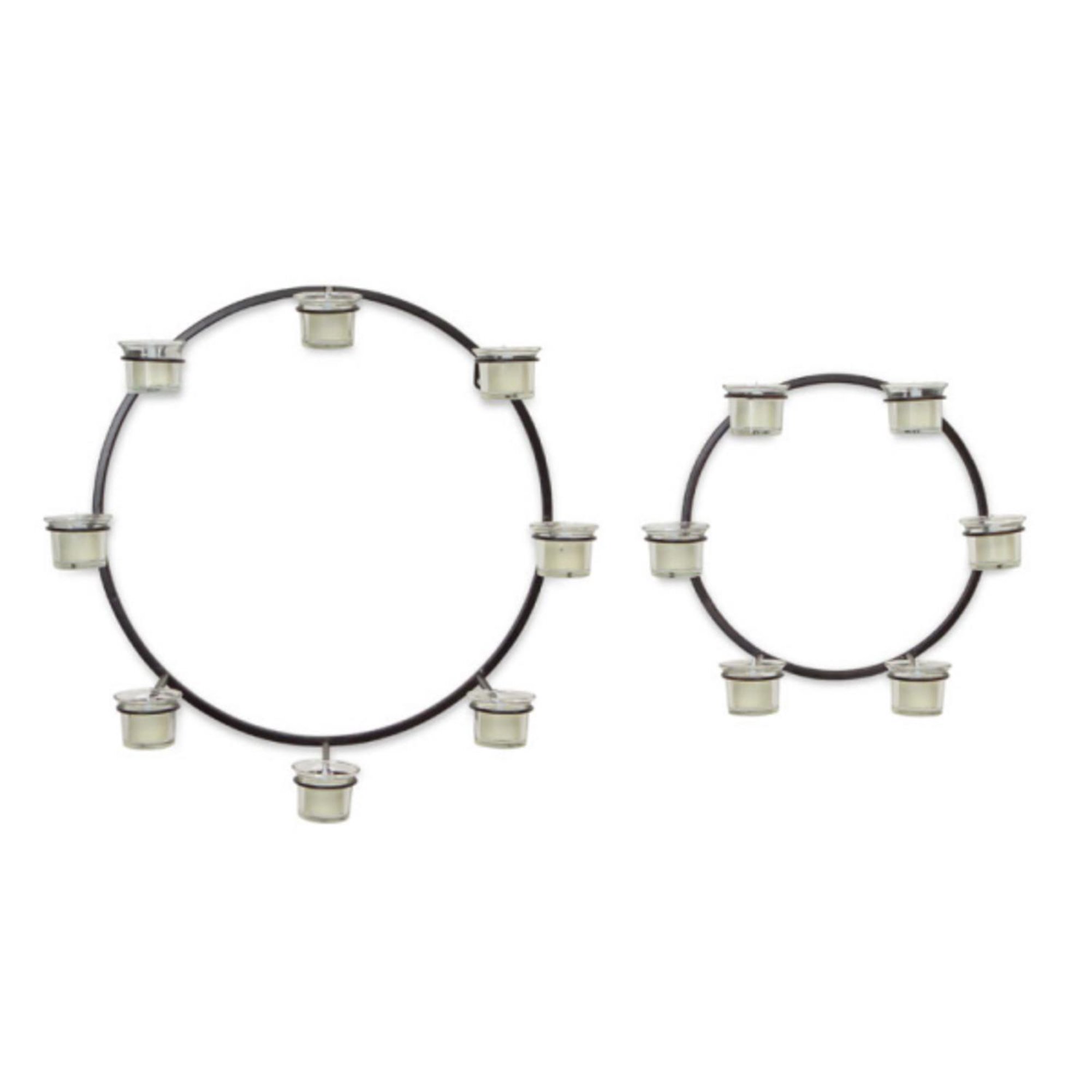 Set Of 2 Modern Circle Wall Mounted Black Metal Votive Candle