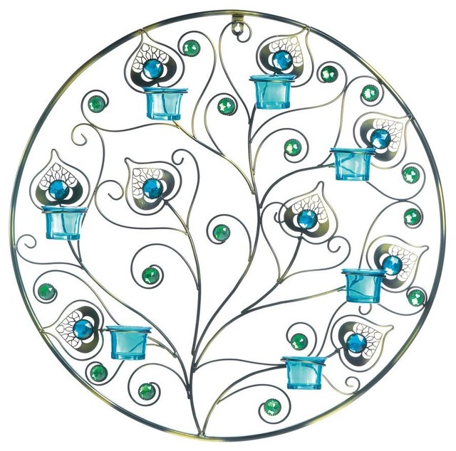 Candle Holder Peacock Plumes Round Wall Sconce Buy Crackled