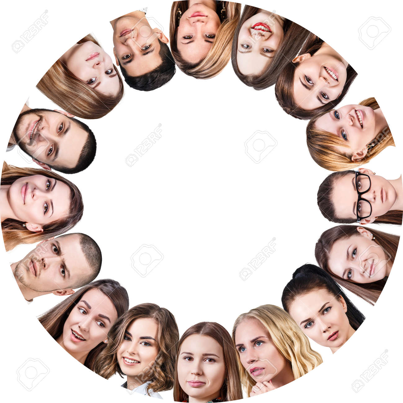 Collage Of Different People Group In Circle Frame With Copy