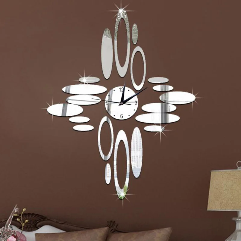 New House Decorated Diy Wall Clocks Sticker Oval Circle Mirror
