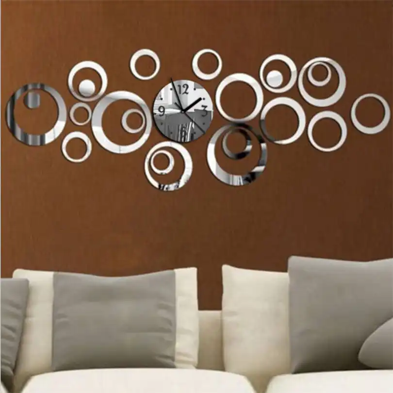 3d Circle Mirror Wall Stickers Large Decorative Wall Clocks Home