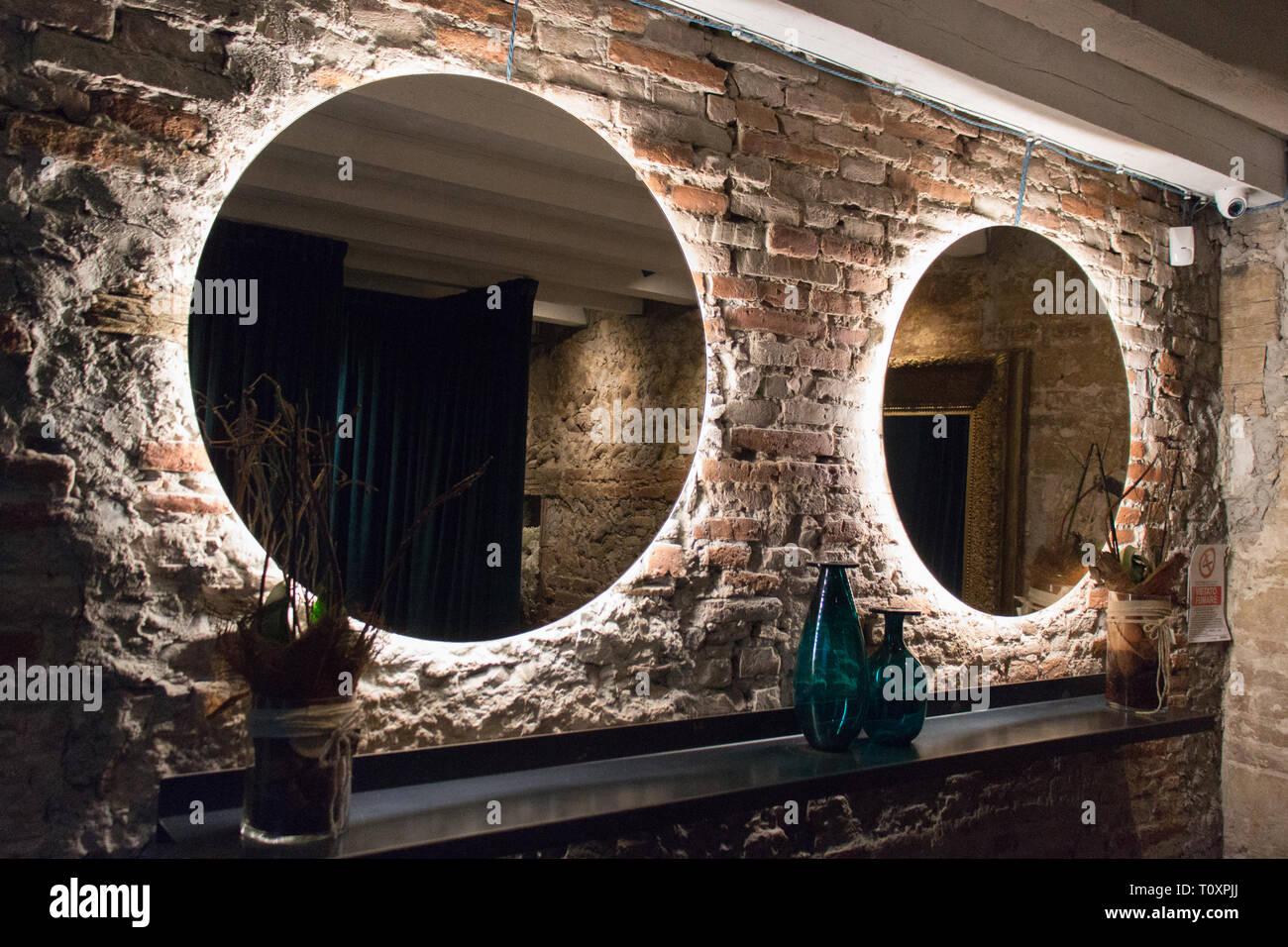 Italy Verona December 08 2017 The View Of Interior With Brick Wall And Two Circle Mirrors On December 08 2017 Veneto Italy Stock Photo Alamy