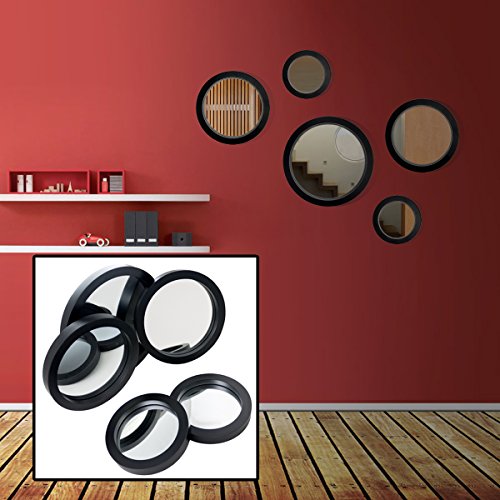5pc Black Framed Circle Mirror Set Bubble Room Decor Import It All