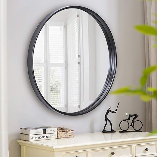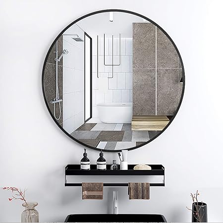 Amazon Com Trvone Round Mirror 24 Large Wall Mirror 1 6 Depth Black Brushed Aluminum Alloy Metal Frame Circle Mirror Modern Wall Mounted Mirror For Bedroom