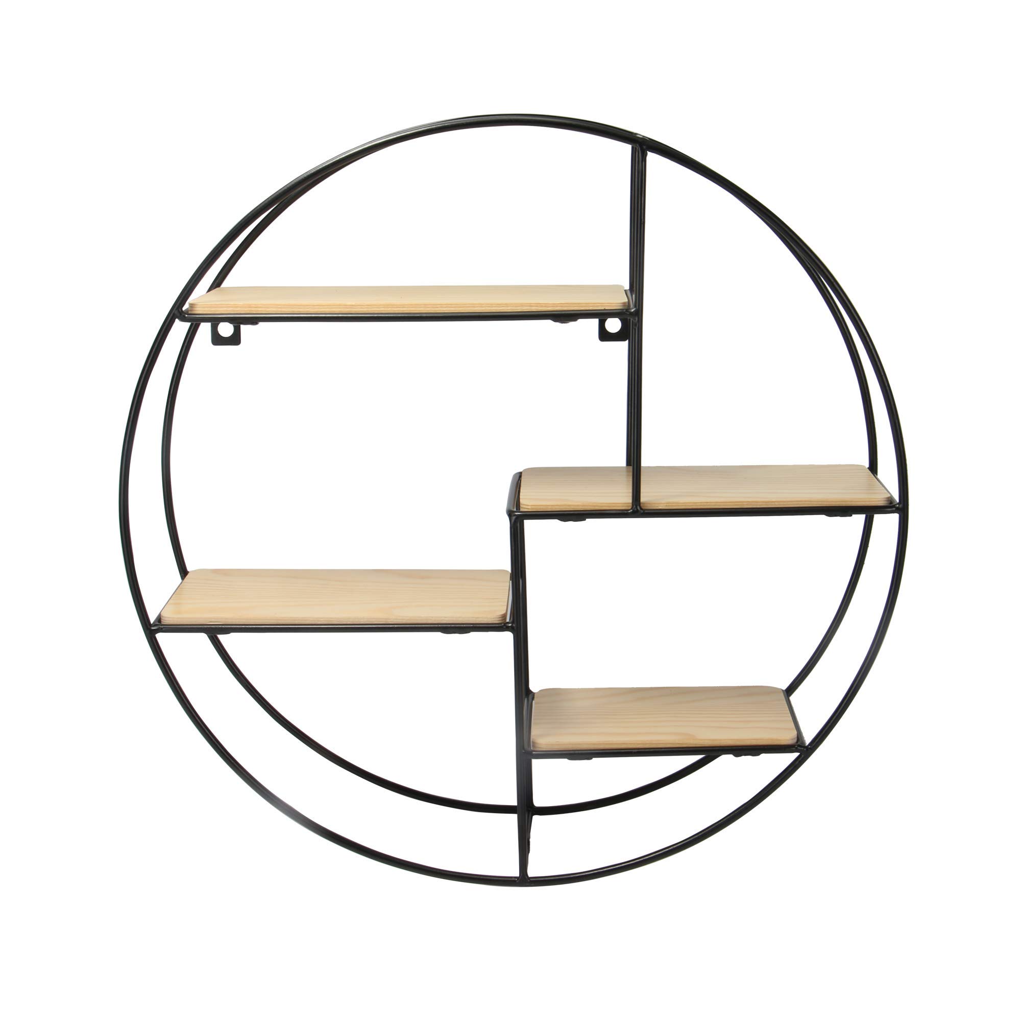 Black Metal Circle Round Wall Unit With Wooden Shelves Industrial Style Four Levels Iron Display Amazon Co Uk Office Products