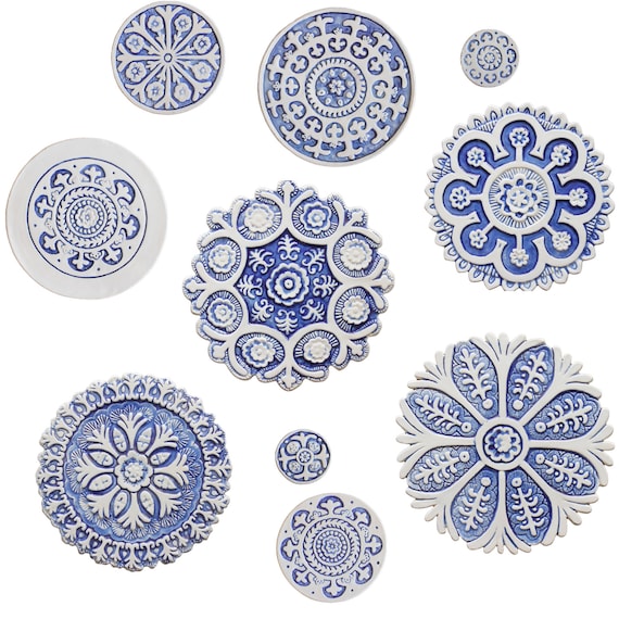 Suzani Circle Wall Sculpture Made From Ceramic Set Of 10 Etsy