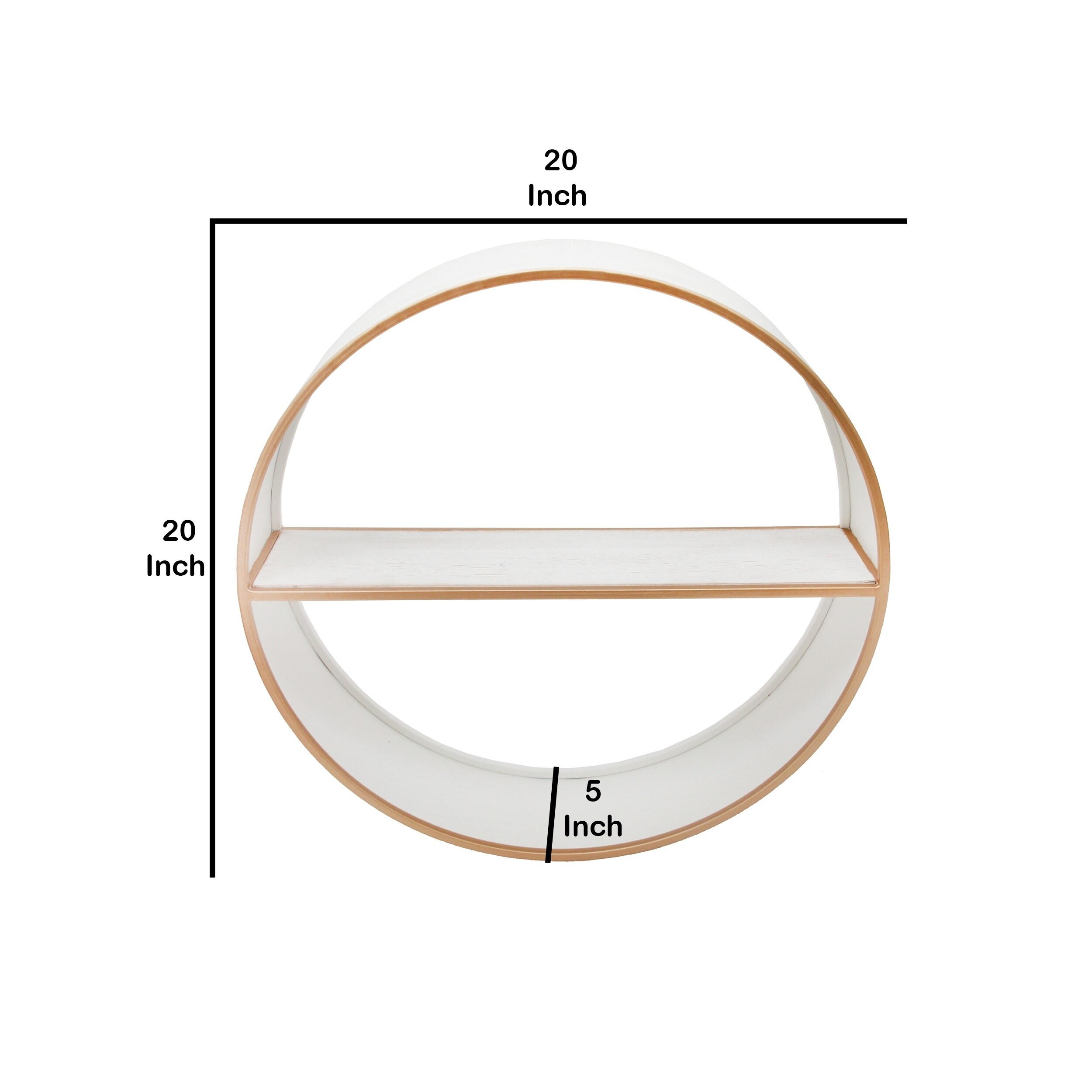 Benjara Wood And Metal Round Wall Shelf With One Open Shelf White
