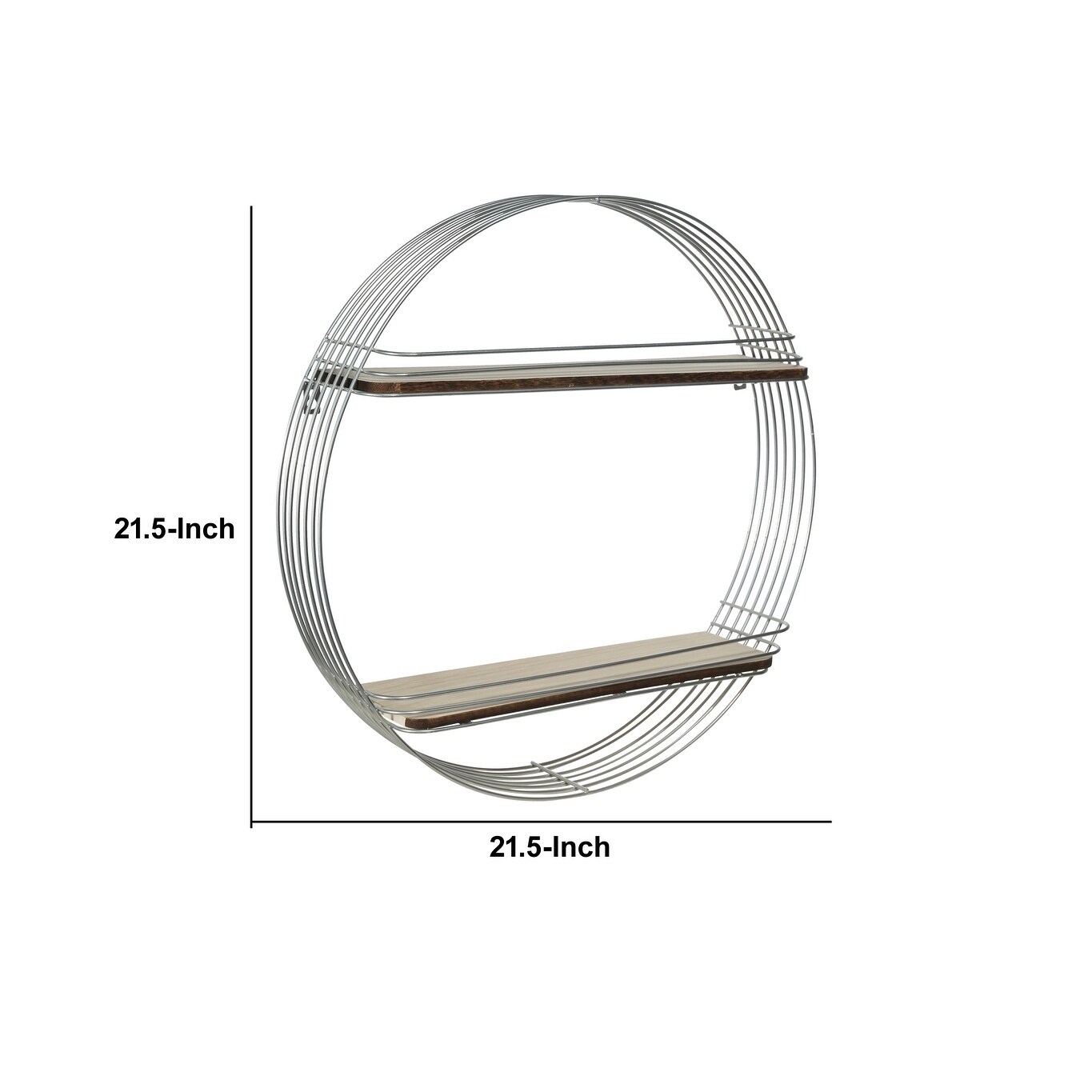 Shop Metal Round Wall Shelf With 2 Tier Wooden Surface Brown And