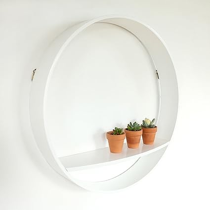 White Circular Round Wall Mounted Mirror With Shelf Display