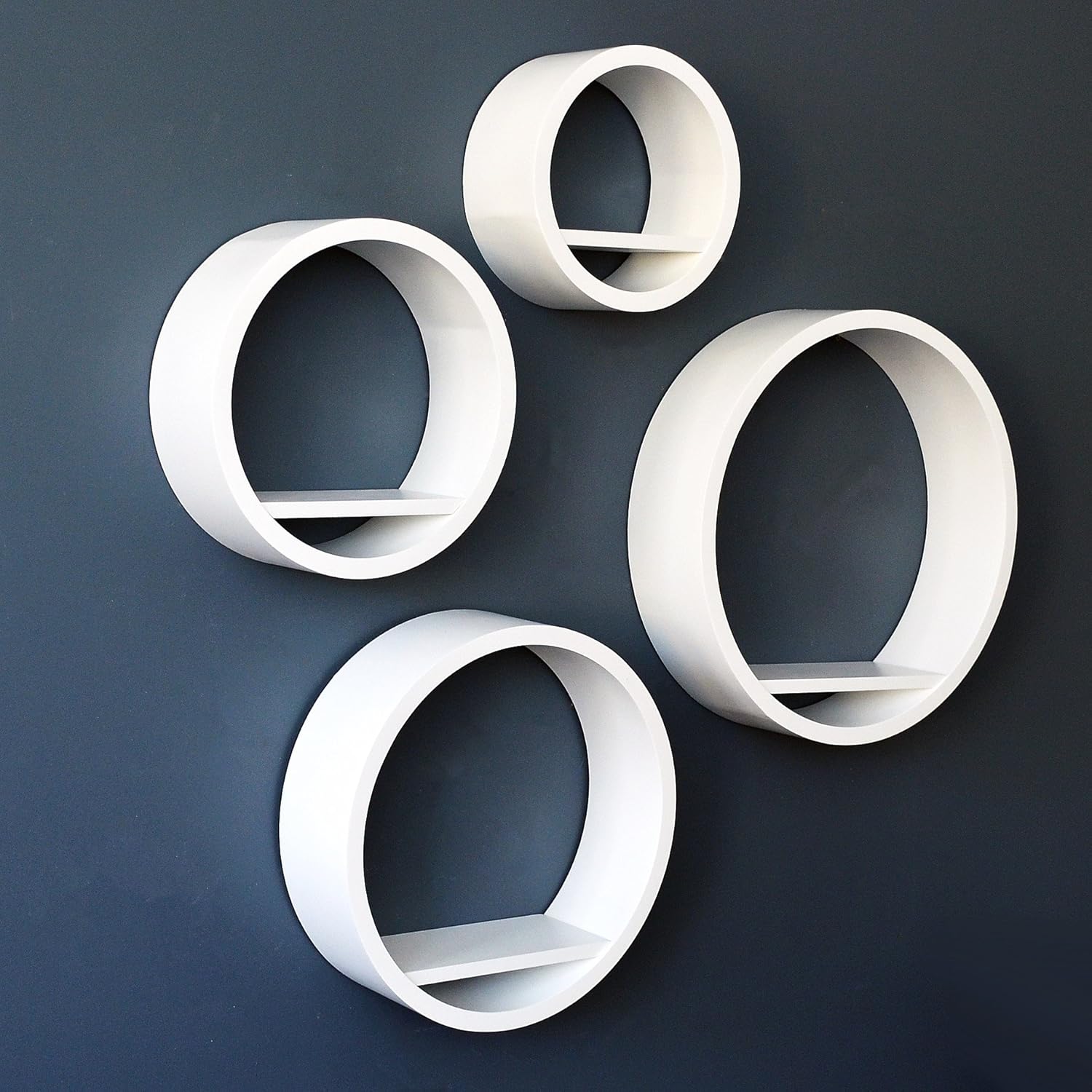 Very Beautiful Set4 Mdf Wall Round Circle Shelf Outside White