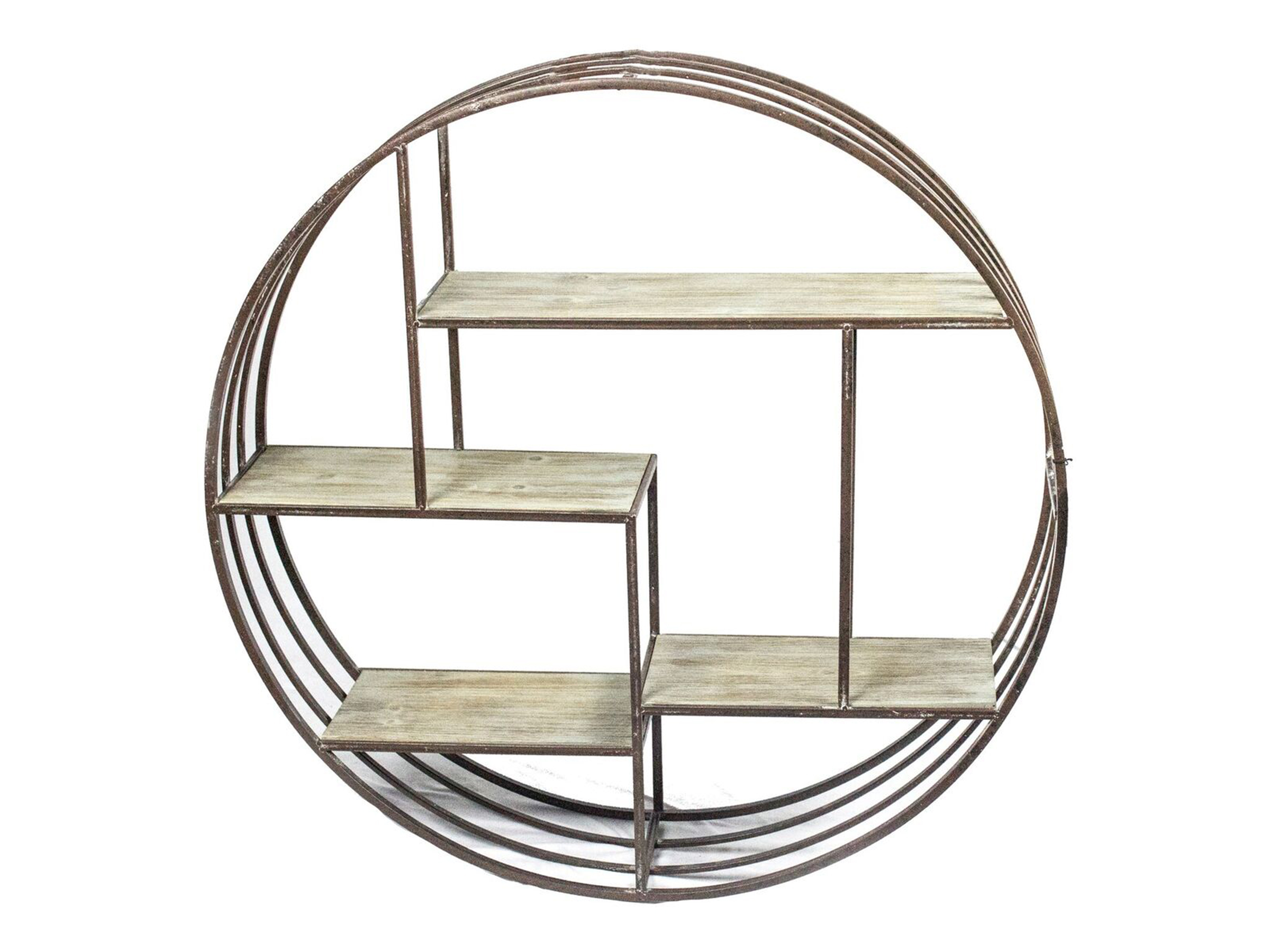 Industrial Design Metal Circle Wooden Shelf Unit With Unique