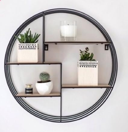 Amazon Com Tangkula Round Wall Shelf Wood Iron Wall Mounted