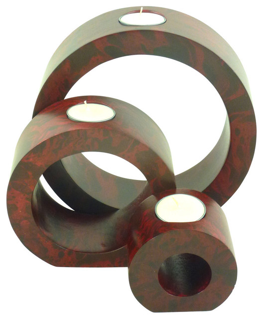 Mango Wood Round Nesting Candleholders Set Of 3 Asian