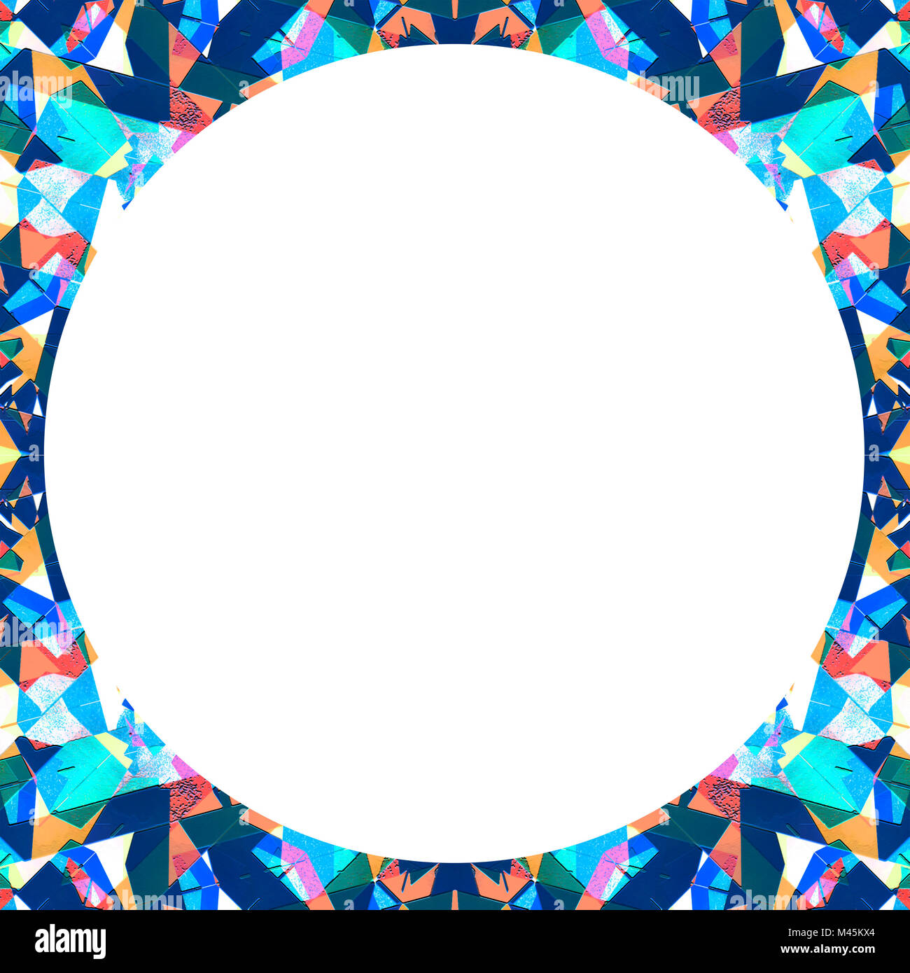 White Frame With Circular Multicolor Collage Pattern Borders Stock