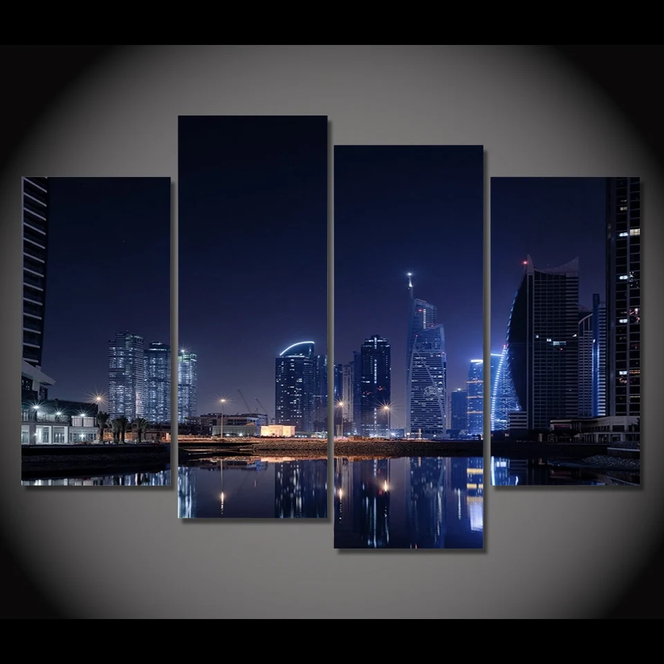 2020 Canvas Painting Canvas Art Dubai City Lights Night Hd Printed
