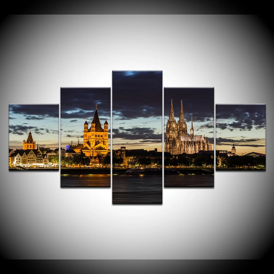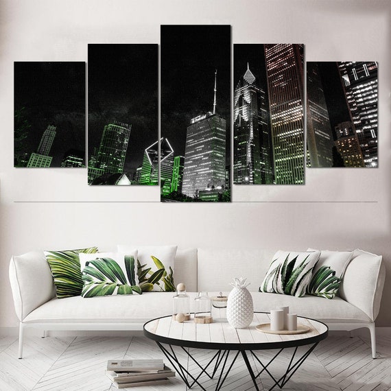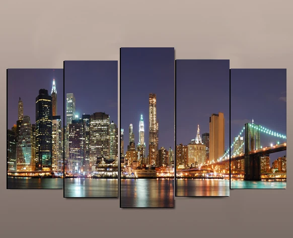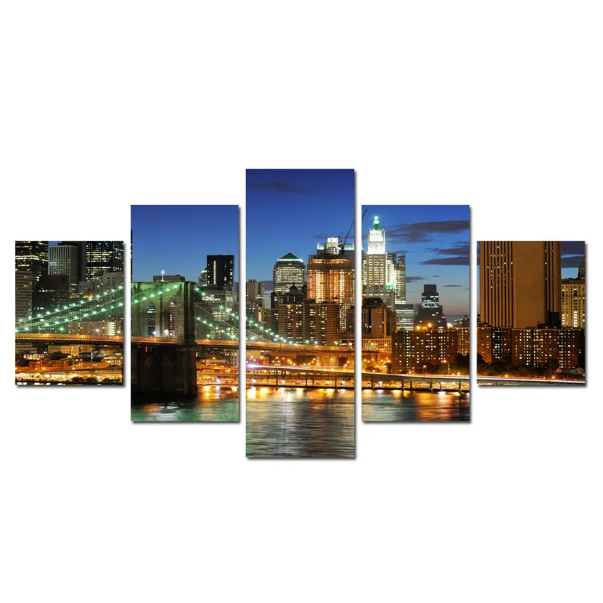 Unframed 5 Piece City Lights Paintings On Canvas Prints Home Decor