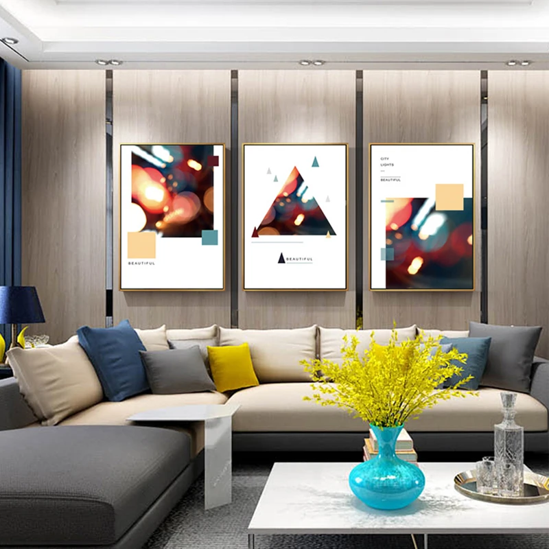 Modern Abstract Geometry Canvas Painting City Lights Wall Art
