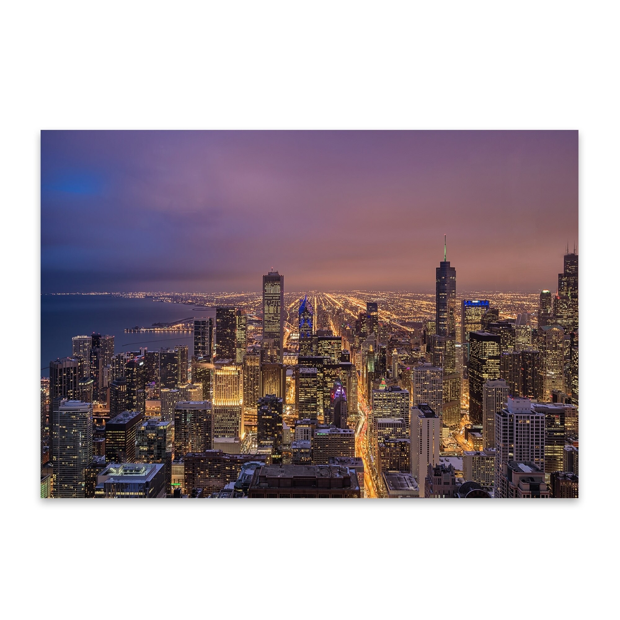 Framed Photo Print Of Michigan Avenue Chicago Evening Blue Hour