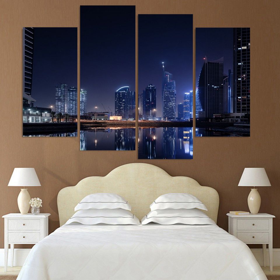2016 New High Quality Luxry Unframed 4 Piece City Lights Modern