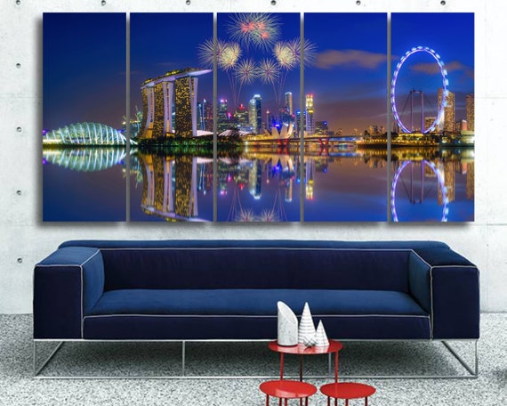 Singapore Cityscape Canvas Art Singapore Night Skyline Etsy