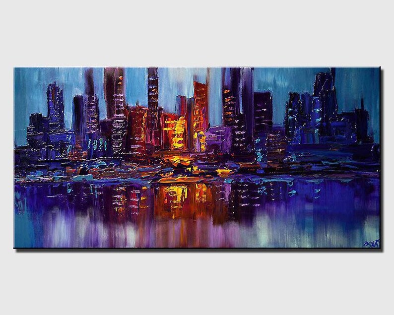 Large Cityscape Painting Landscape Original Canvas Painting By
