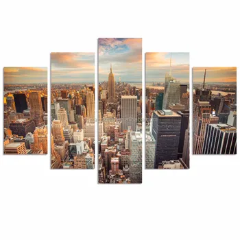 5 Panel New York City Kanvas Cetak Empire Serikat Building Wall