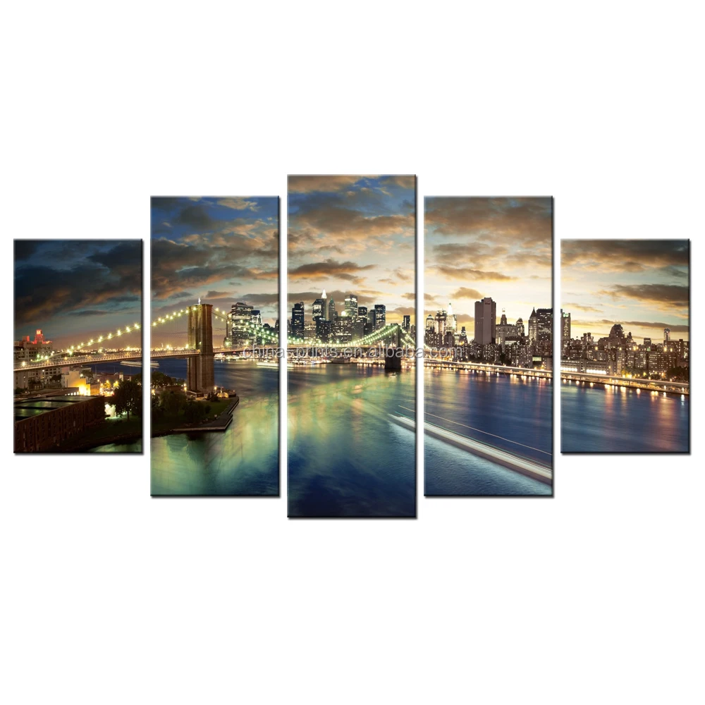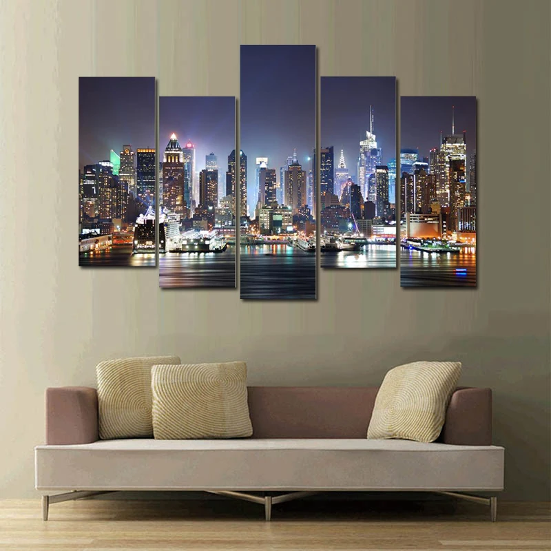 5 Pcs Set Cityscape New York Di Malam Hari Kanvas Cetak Modern