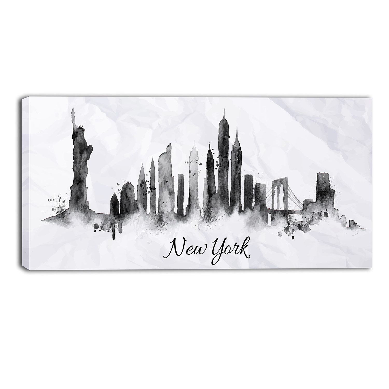 Designart Silhouette Ink New York Cityscape Graphic Art On Wrapped