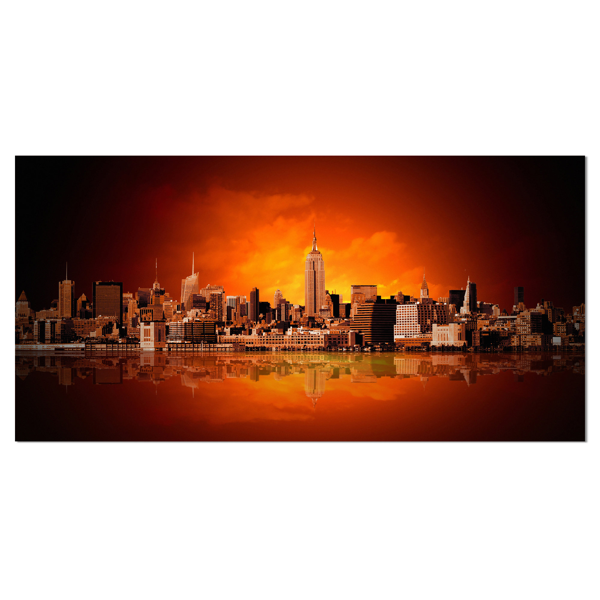 Designart New York City Panorama In Red Light Cityscape Wall Art