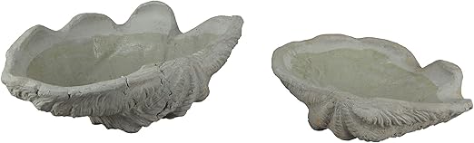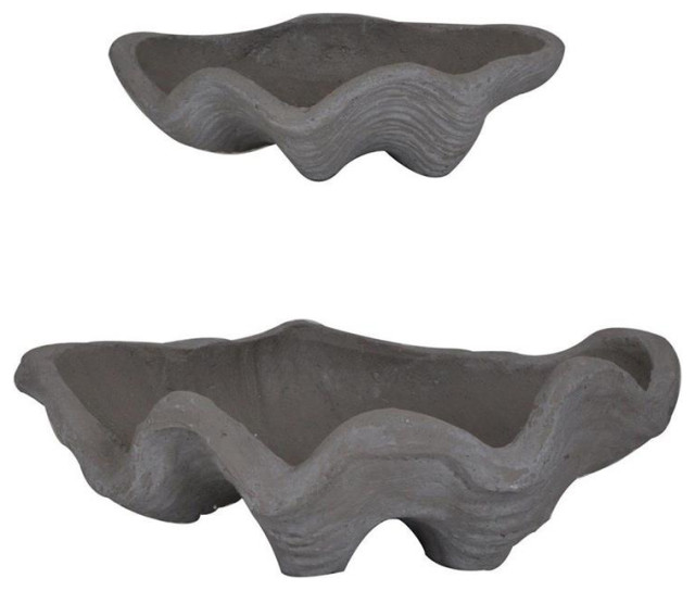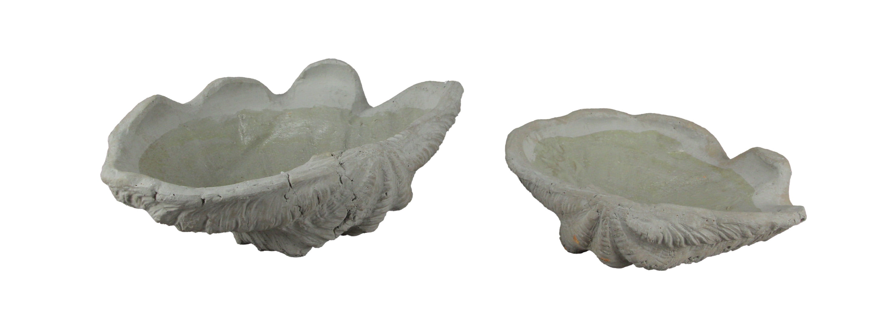 Set Of 2 Natural Gray Terracotta Giant Clam Shell Decorative Bowls