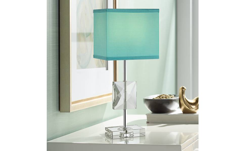 Clara Modern Accent Table Lamp 18 High Square Crystal Teal Blue