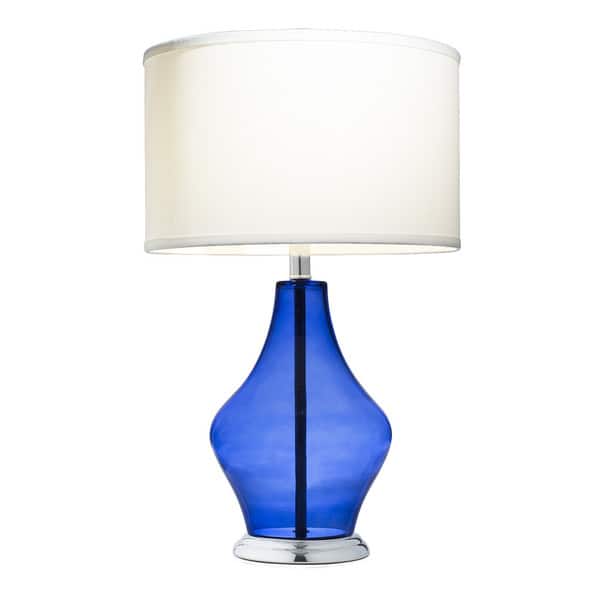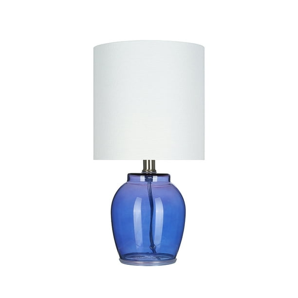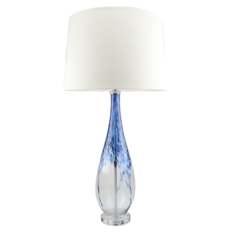 22 In Clear Blue Oval Glass Table Lamp With White Drum Shade Lht