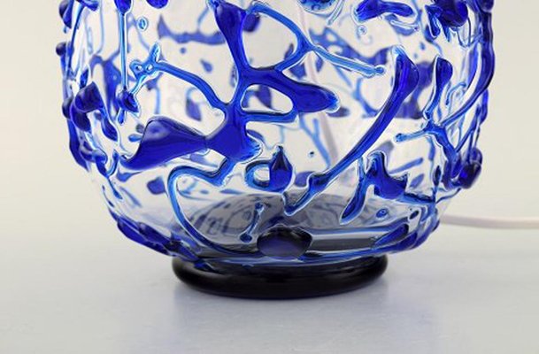 Round Clear And Blue Glass Table Lamp From Holmegaard 1960s For