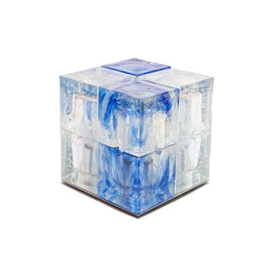Italian Blue And Frosted Clear Glass Murano Cube Table Lamp By