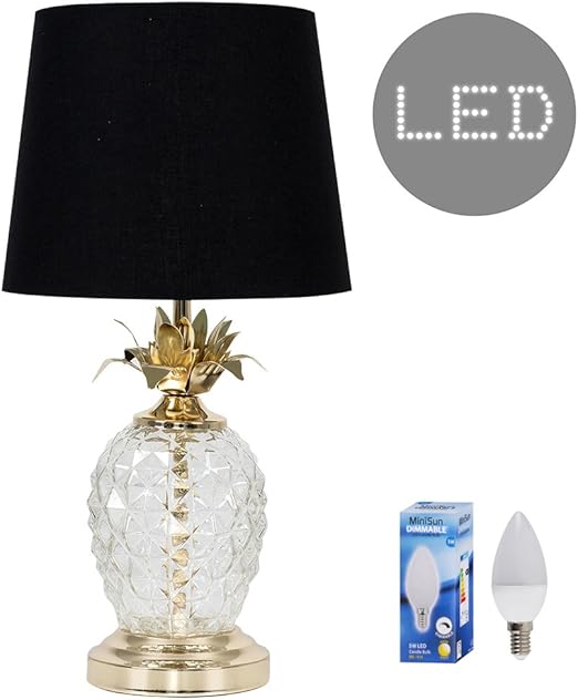 Clear Glass Gold Pineapple Touch Table Lamp Black Shade Ledlam