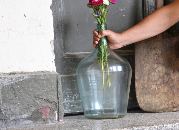 Clear Glass Bottle Vase Vintage Demijohn Hand Blown Glass Etsy