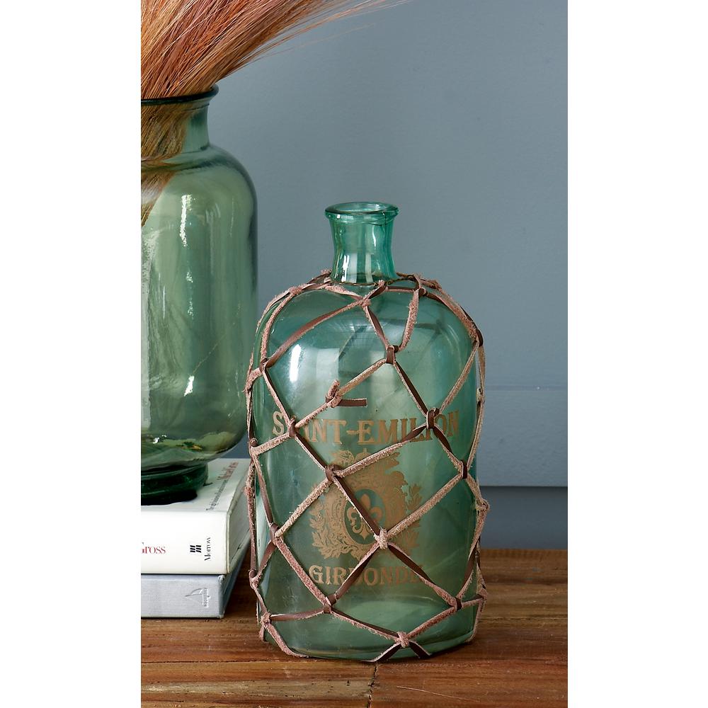 Litton Lane 10 In Clear Glass Decorative Bottle Vase With Leather