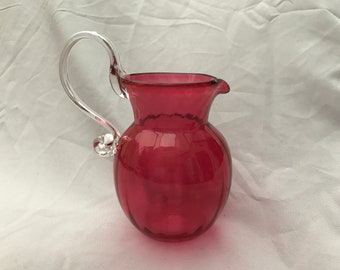 No Handle Angular Unusual Hand Blown Red Clear Glass Jugsmall