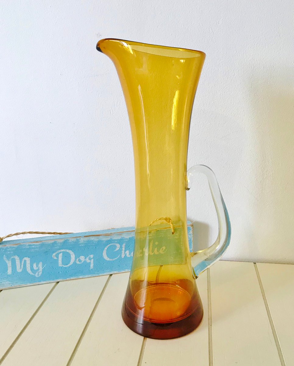 Items Similar To Italian Empoli Jug Vase Mid Century Amber Honey