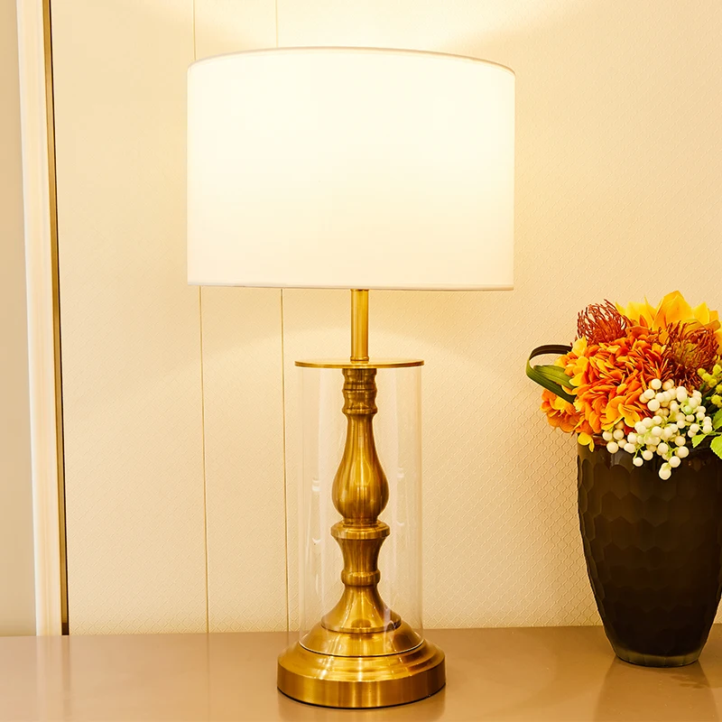Amrican Style Vintage Clear Glass Copper Colour Metal Table Lamp