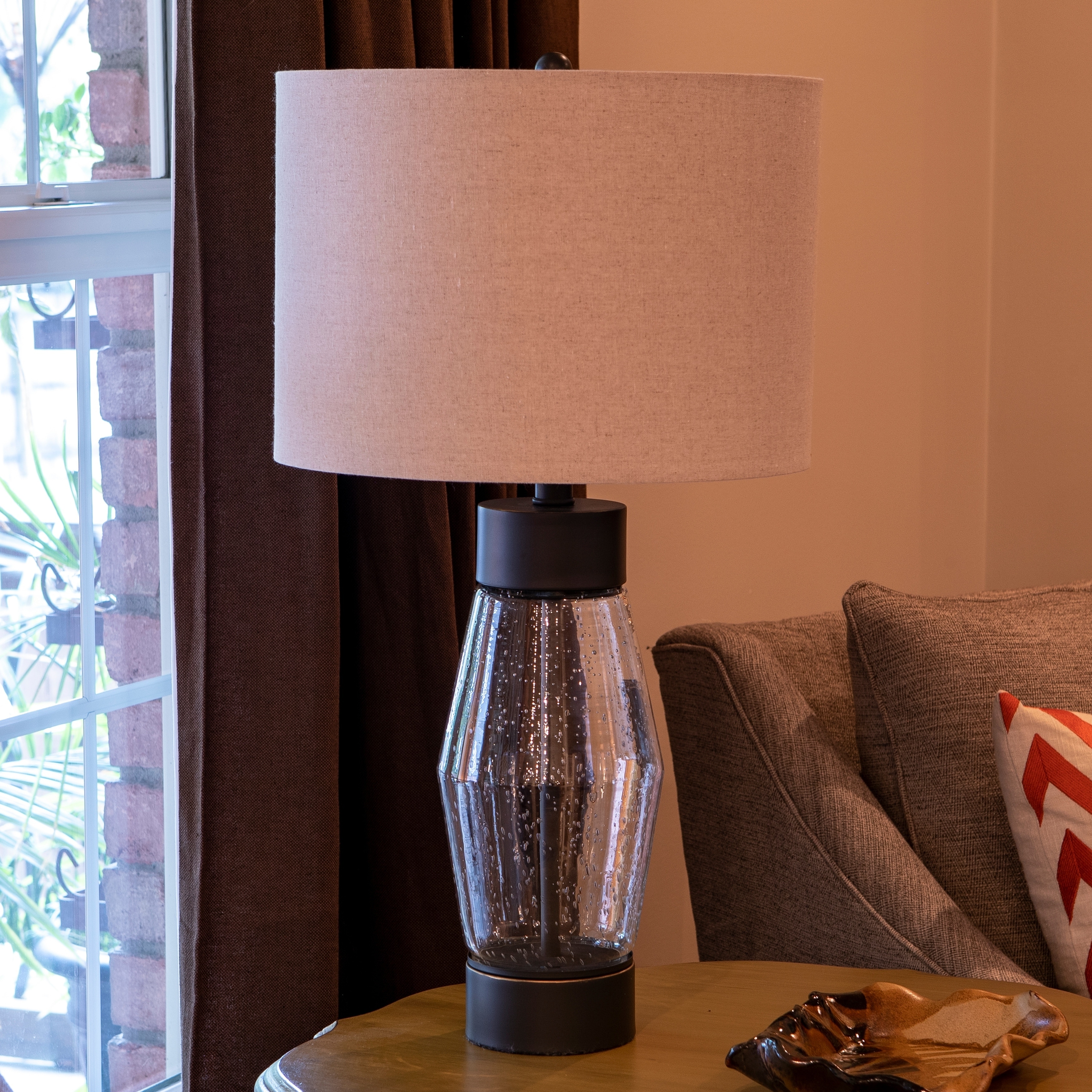 Teardrop Glass Table Lamp With Fabric Drum Shade