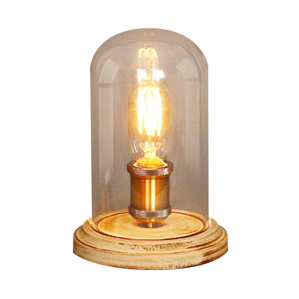 Clear Glass Table Lamp Wood Base Desk Accent Lamp Vintage