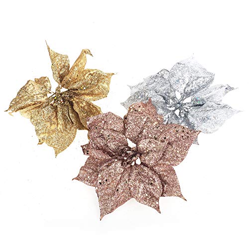 Homeford Clip On Glitter Poinsettias Christmas Decoration 3 Piece