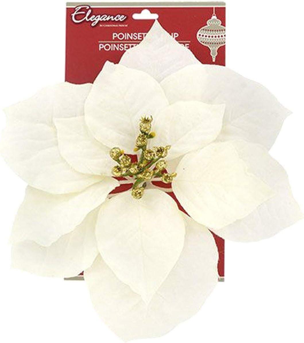 Poinsettia Cream Champagne With Clip 10cm Christmas Elves Store