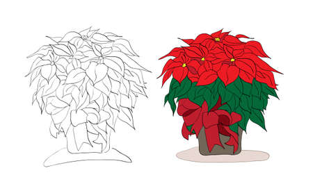Vector Christmas Poinsettia Color And Black And White Version On A