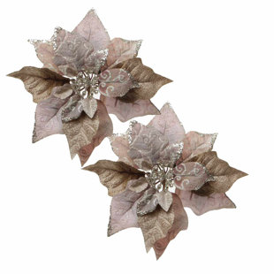 Poinsettia Pink Champagne With Clip 6 5cm Christmas Elves Store