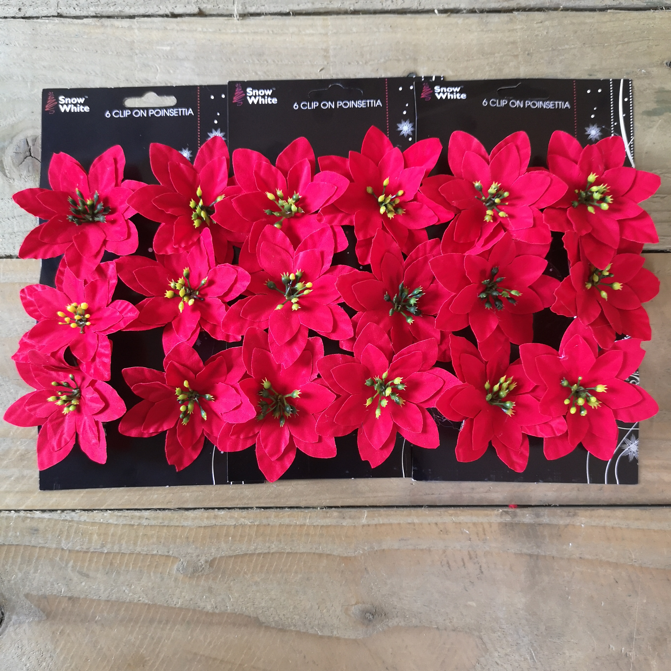 3 X Pack Of 6 Clip On Red Christmas 8cm Poinsettias Tree Wreath