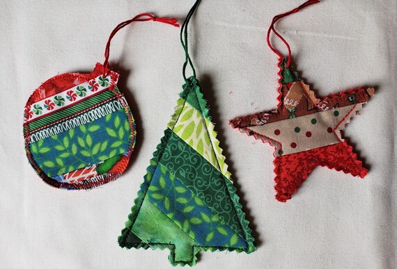 Set Of 3 Quilted Cloth Christmas Ornaments Etsy