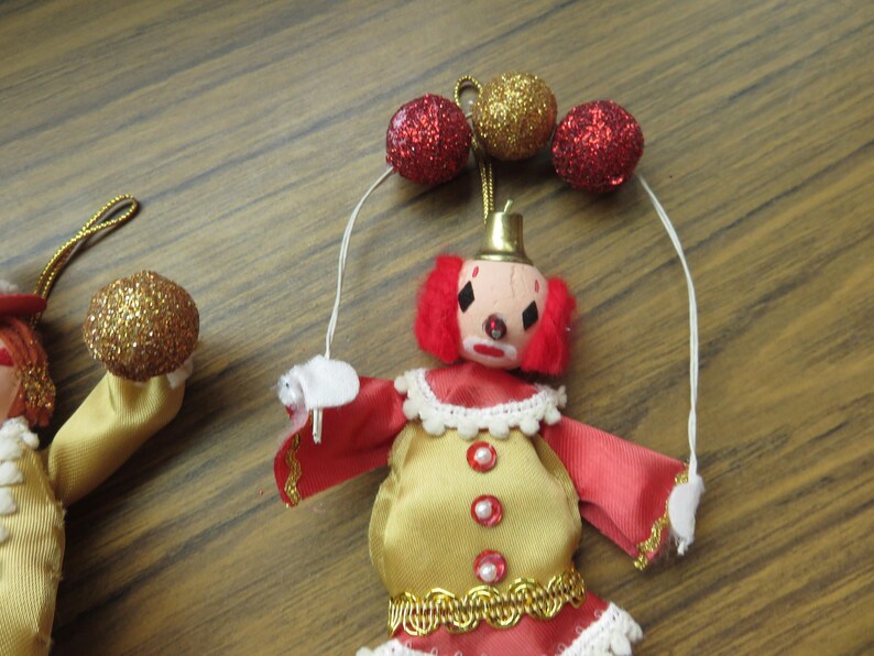 Vintage Lot Of 2 Cloth Stuffed Clown Christmas Ornaments